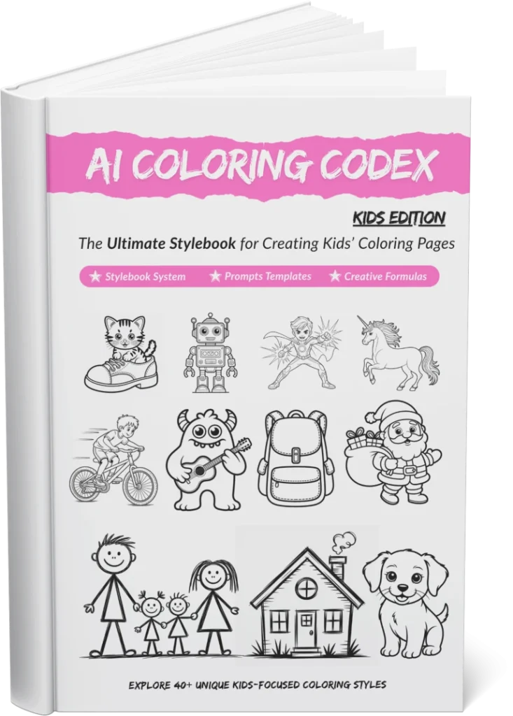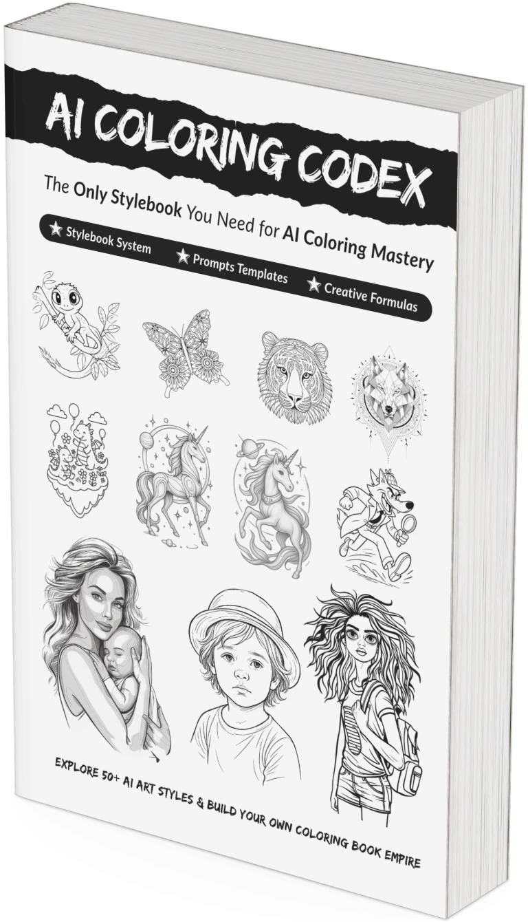 This is a full AI Coloring Stylebook designed to help creators publish faster, better, and at scale.