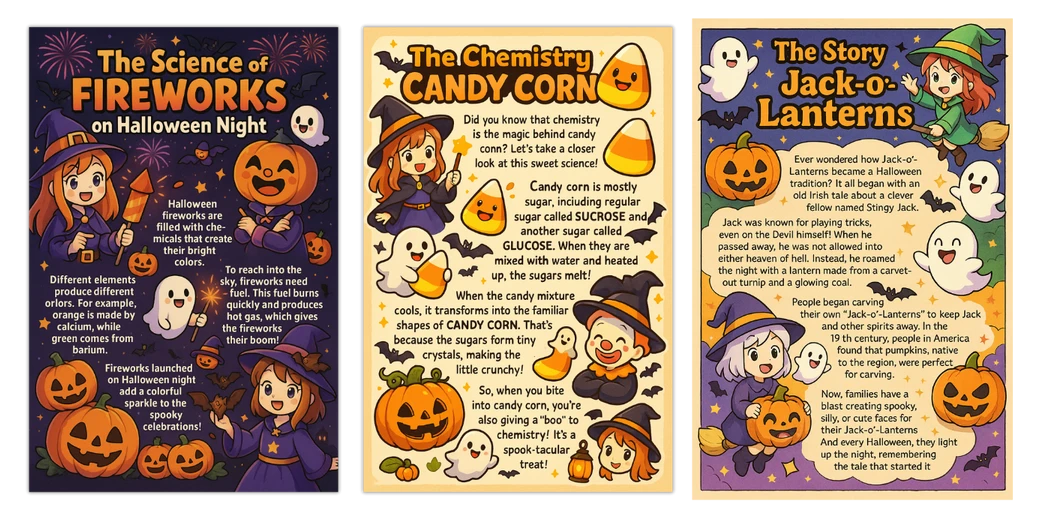 Turn simple ideas into adorable Halloween coloring pages in seconds!