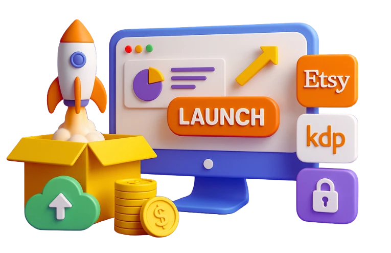 Follow the quickstart guide to launch your creations. Upload them to Etsy, Amazon KDP, or sell the prompt vault itself — your choice, your profits. You’ll be ready to start earning from day one.