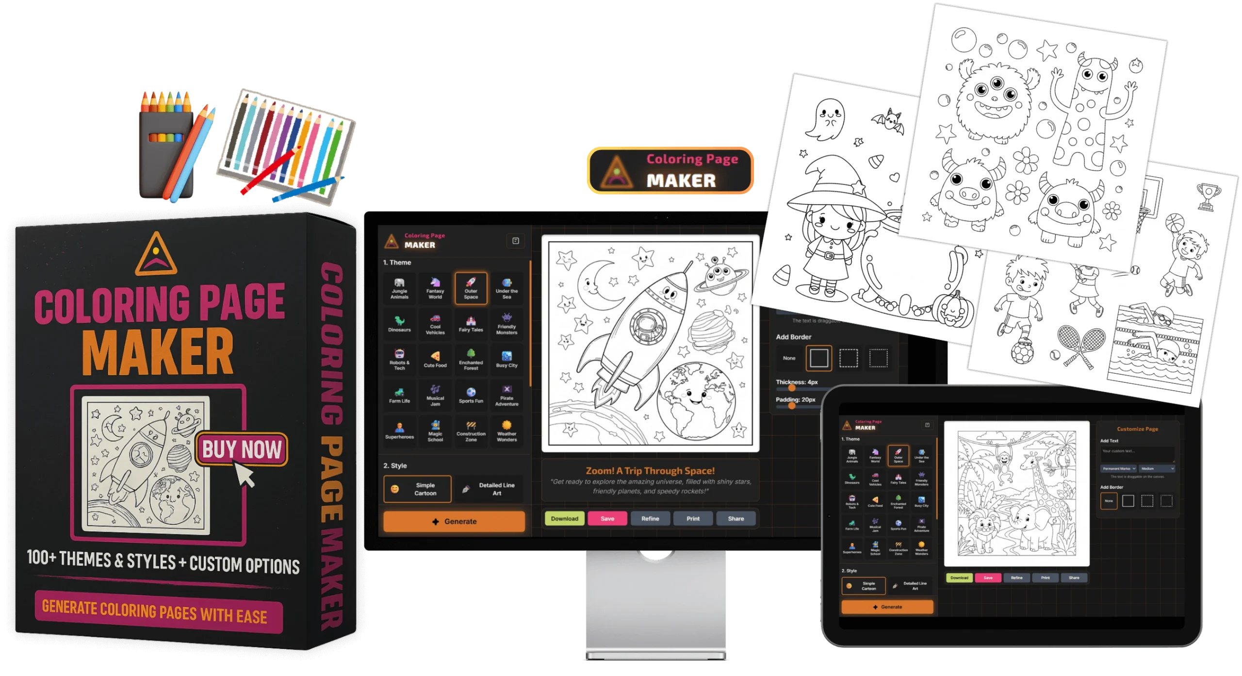Use the Coloring Page Maker to fill entire KDP books in minutes.